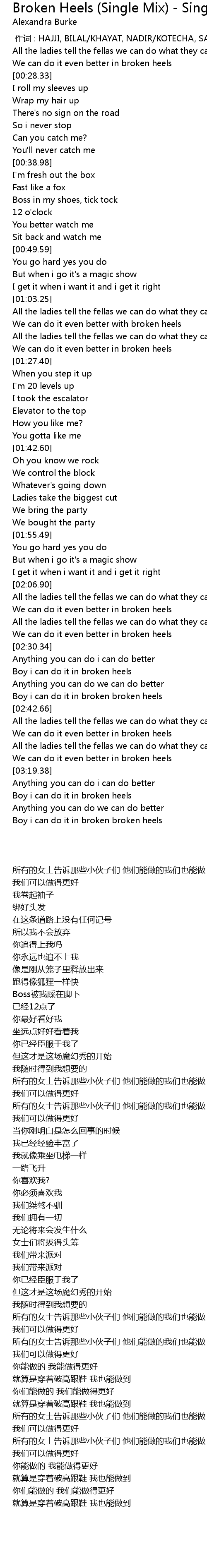 | [02:39.15] | Boy i can do it in broken broken heels |
