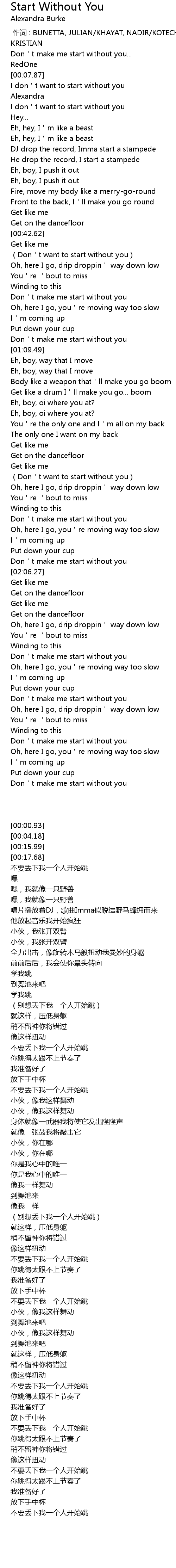| [01:07.50] | Don't make me start without you |