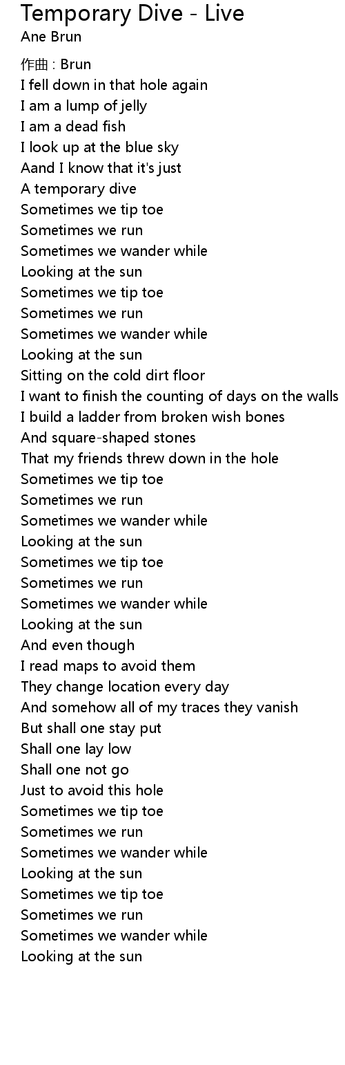 | Song | Temporary Dive - Live |