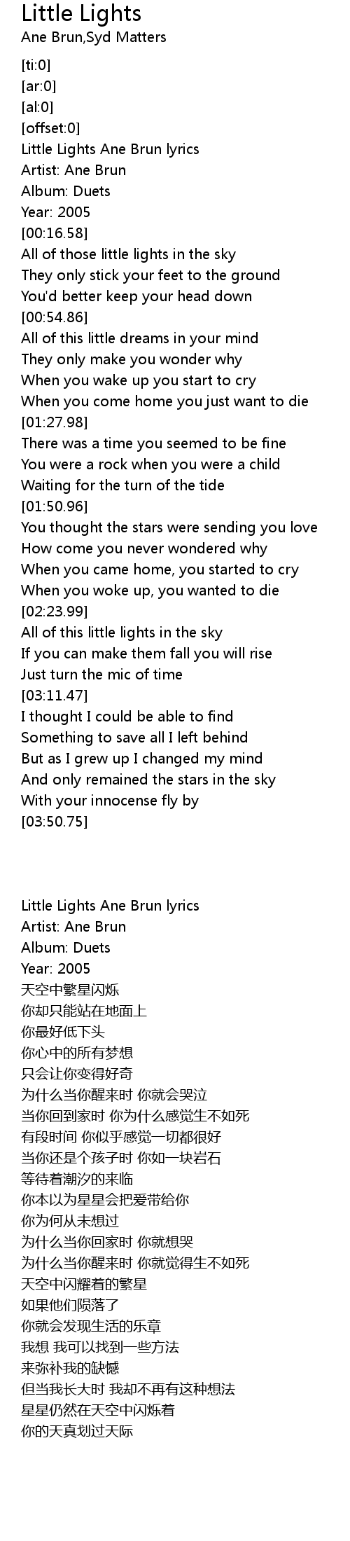 | [00:03.87] | Little Lights Ane Brun lyrics |