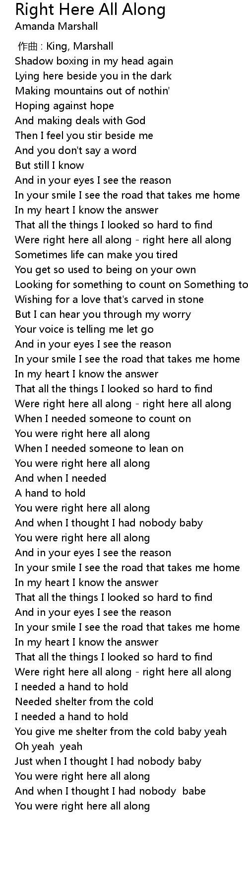 | [03:00.83] | You were right here all along |