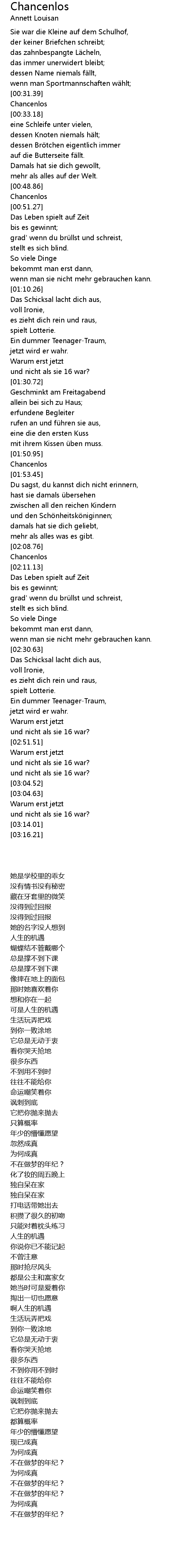 | [00:31.61] | Chancenlos |