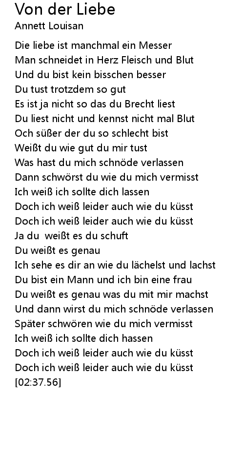 | [02:12.66] | Und dann wirst du mich schnöde verlassen |