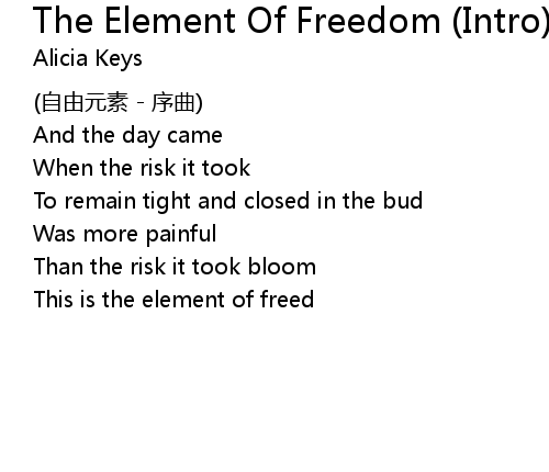| Song | The Element Of Freedom (Intro) |