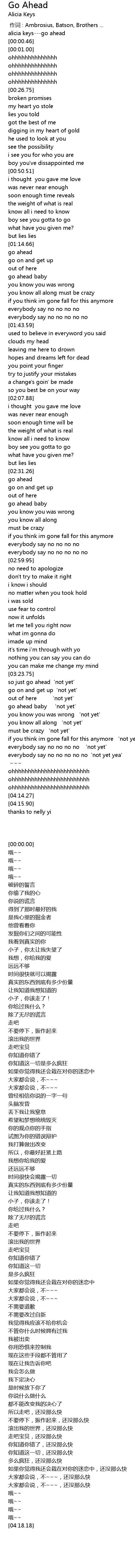 | [00:00.00] | alicia keys---go ahead |