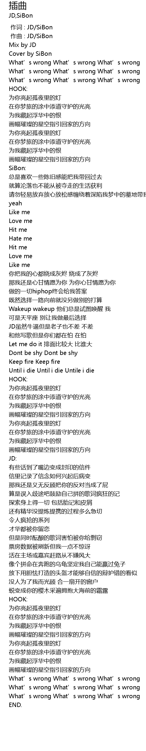 | [00:00.041] | 作曲 : JD/SiBon |
