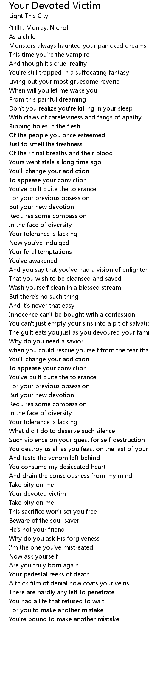 | Song | Your Devoted Victim |