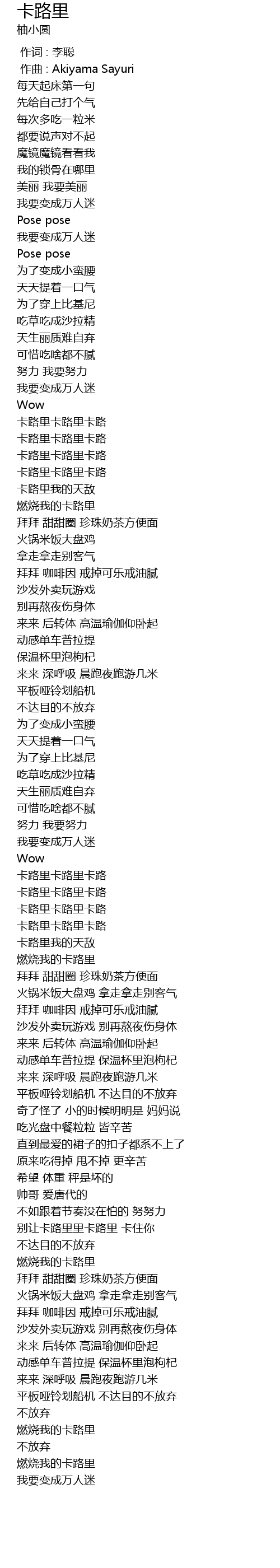 | [01:01.118] | kǎ lù lǐ kǎ lù lǐ kǎ lù |