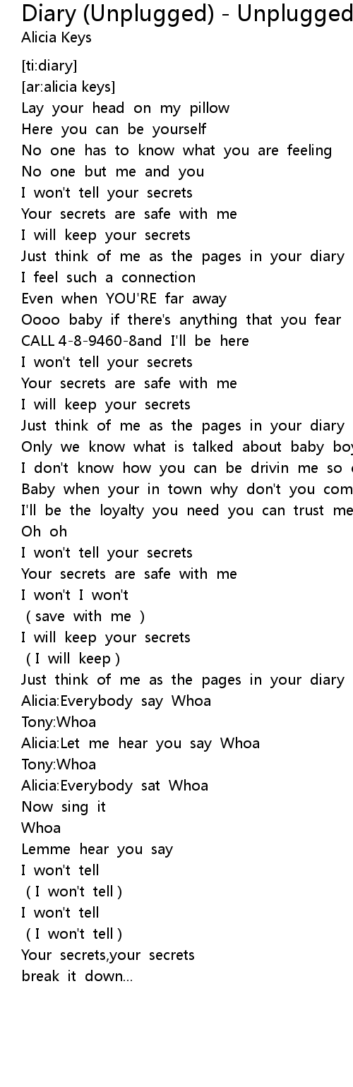 | [01:11.512] | Just think of me as the pages in your diary |