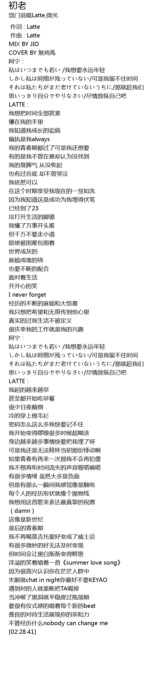 | [01:16.47] | sī lǎo nà jiù chèn wǒ men hái méi chè dǐ lǎo de shí hòu |