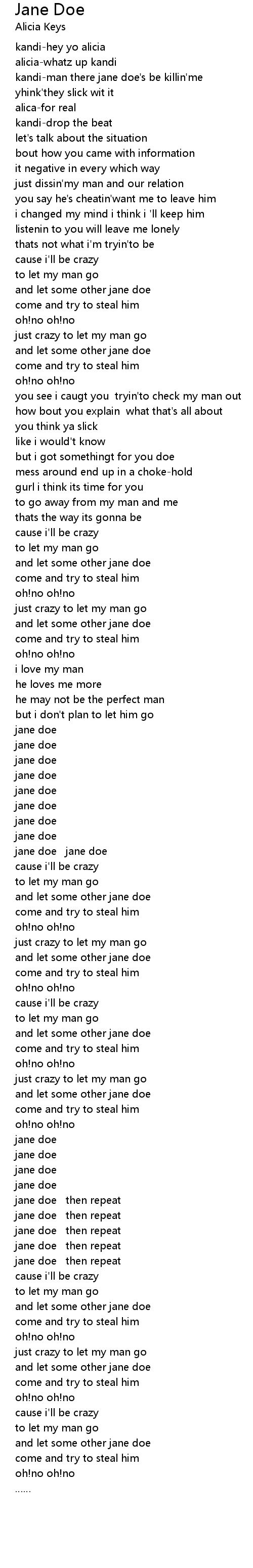 | [00:08.05] | kandiman there jane doe' s be killin' me |