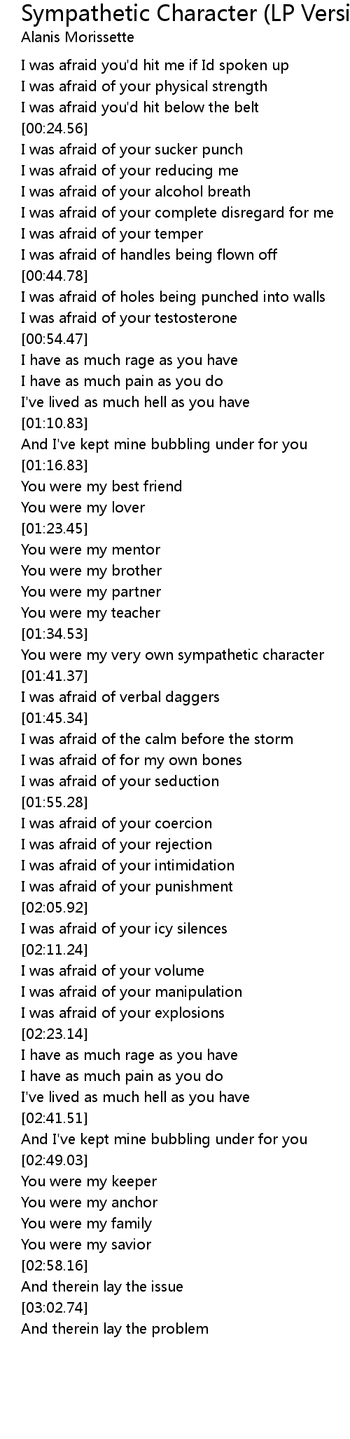 You were my very own sympathetic character |