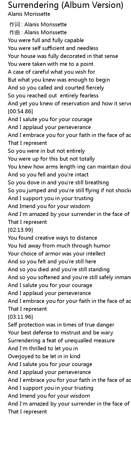 | [00:01.000] | 作曲 : Alanis Morissette |