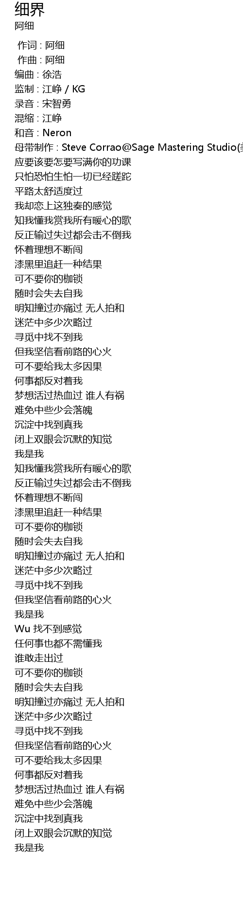 | [00:00.000] | 作词 : 阿细 |
