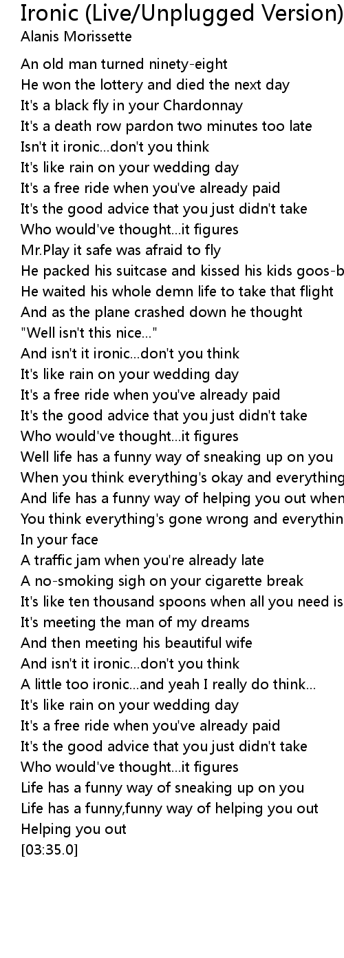 | [00:33.0] | Isn' t it ironic... don' t you think |