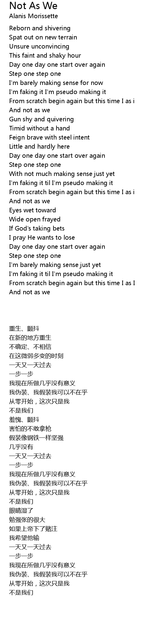 From scratch begin again but this time I as i |
