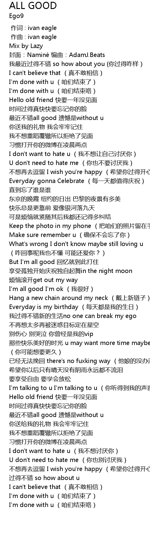 Song ALL GOOD