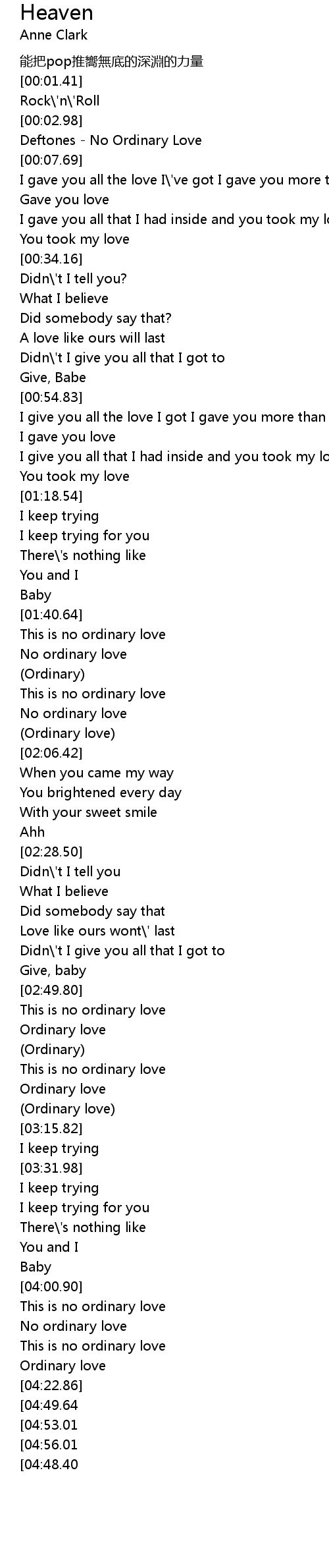| [04:06.50] | No ordinary love |