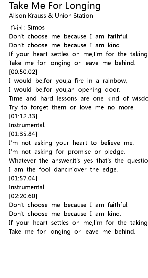| [02:21.05] | Don' t choose me because I am faithful. |