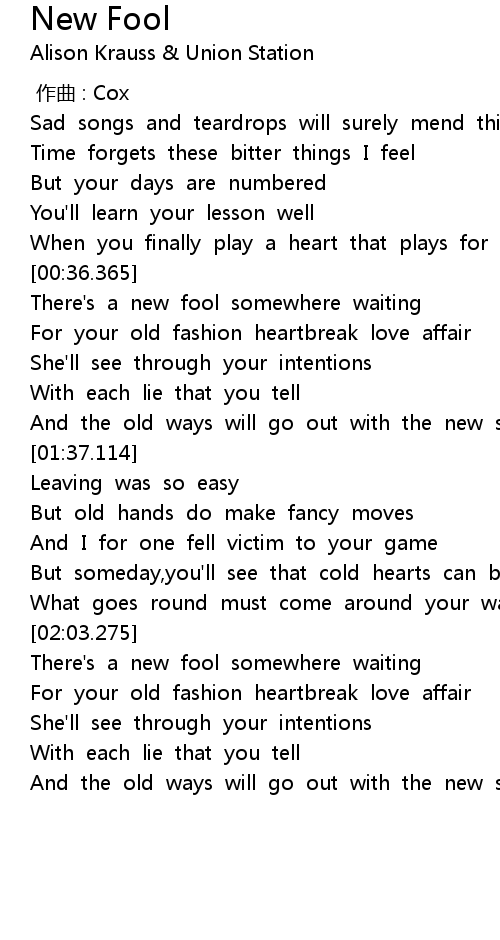 | [00:36.865] | There's a new fool somewhere waiting |