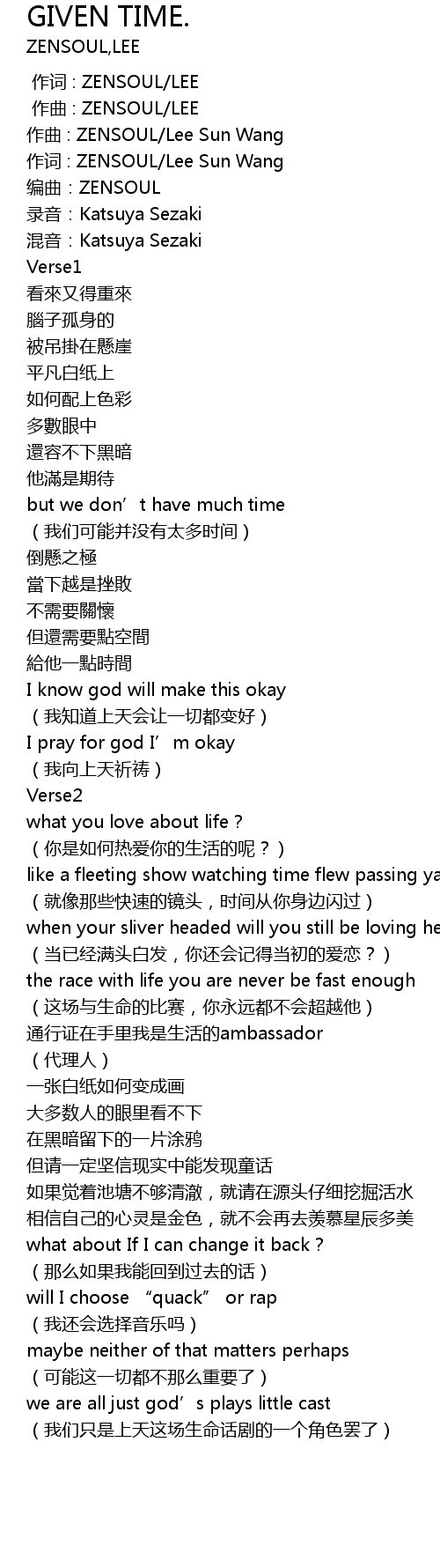 | [00:04.886] | zuo ci : ZENSOUL Lee Sun Wang |