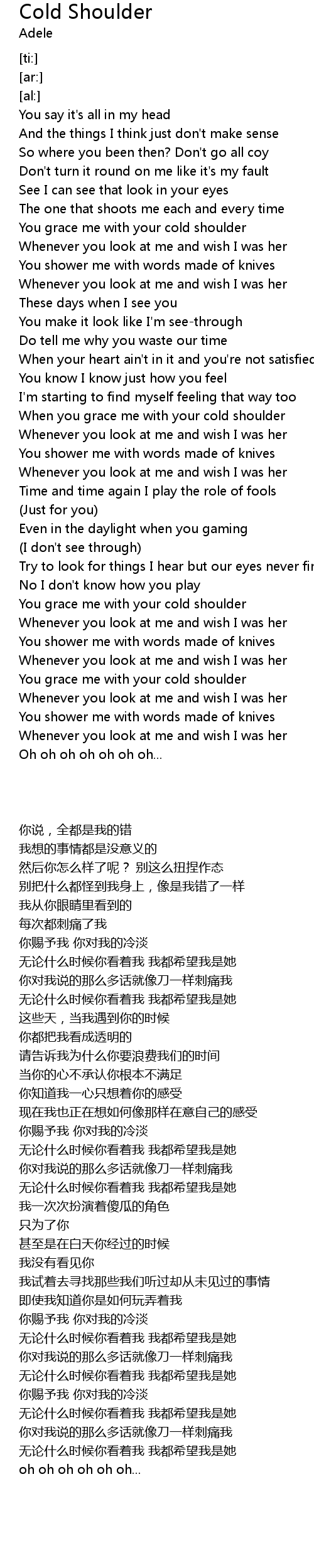 You grace me with your cold shoulder |