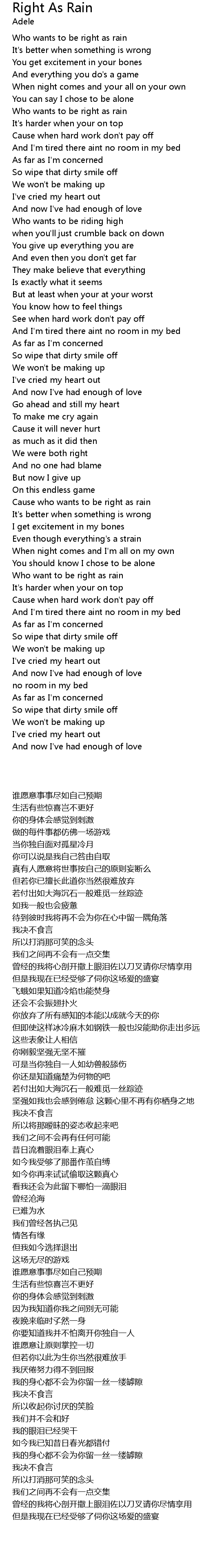 Cause who wants to be right as rain |