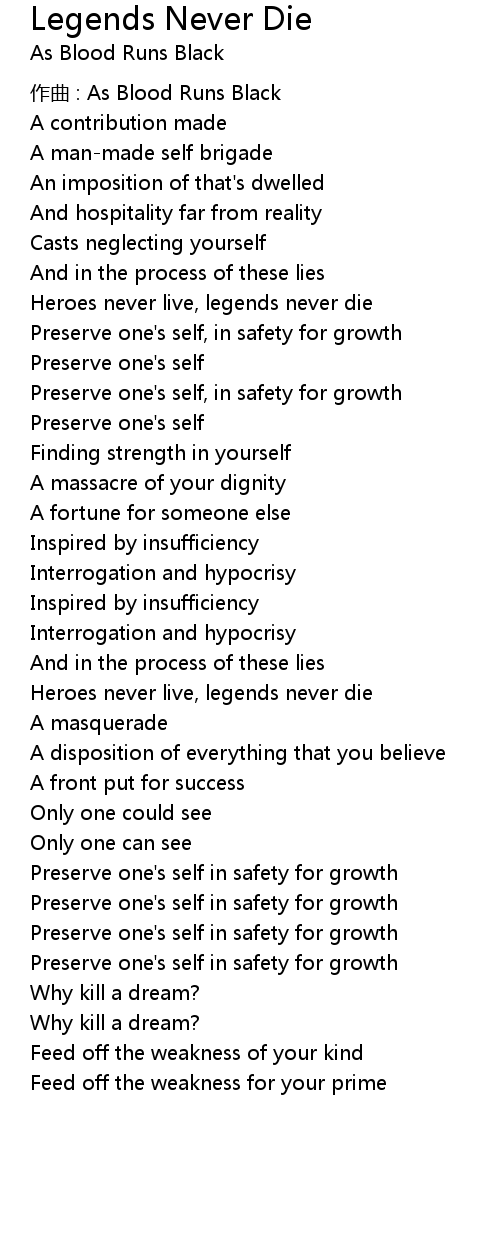 | Heroes never live, legends never die | |