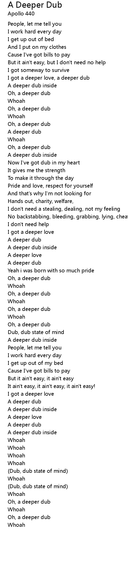 I got a deeper love, a deeper dub |