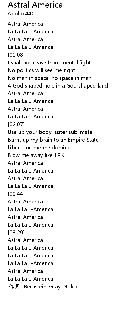 | [00:00.00] | 作词 : Bernstein, Gray, Noko ... |