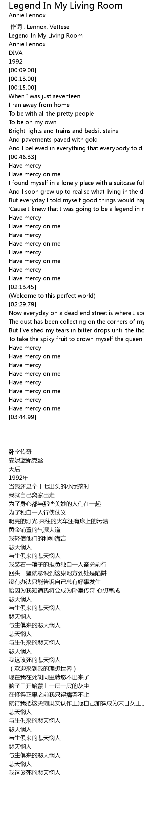 | [00:03.00] | Annie Lennox |