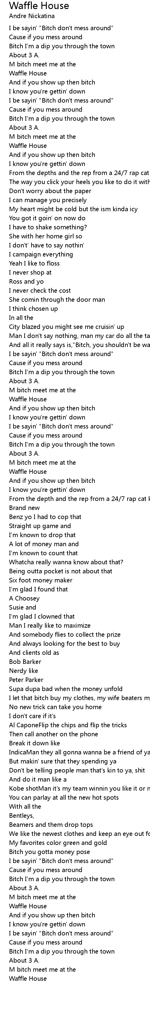 And all it really says is,"Bitch, you shouldn't be walkin, would you hop in?" |