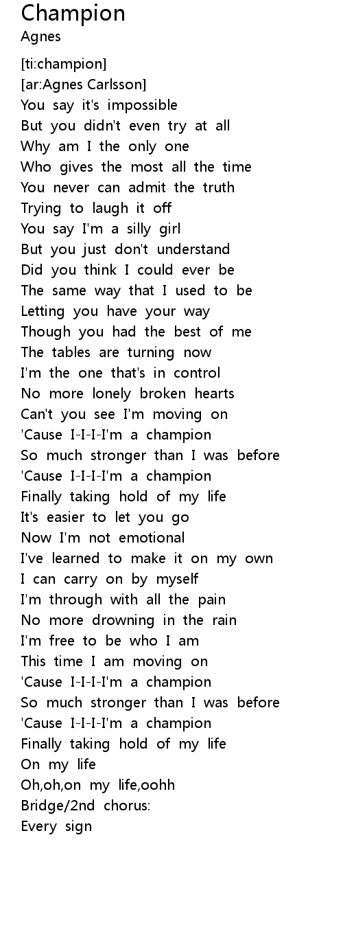 | [01:44.96] | 'Cause I-I-I-I'm a champion |
