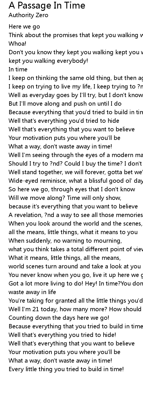 Got a lot more living to do! Hey! In time?You don't face tomorrow what a way to waste away in life |