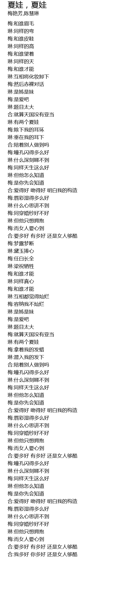 | [02:00.739] | 琳:是姊是妹 |