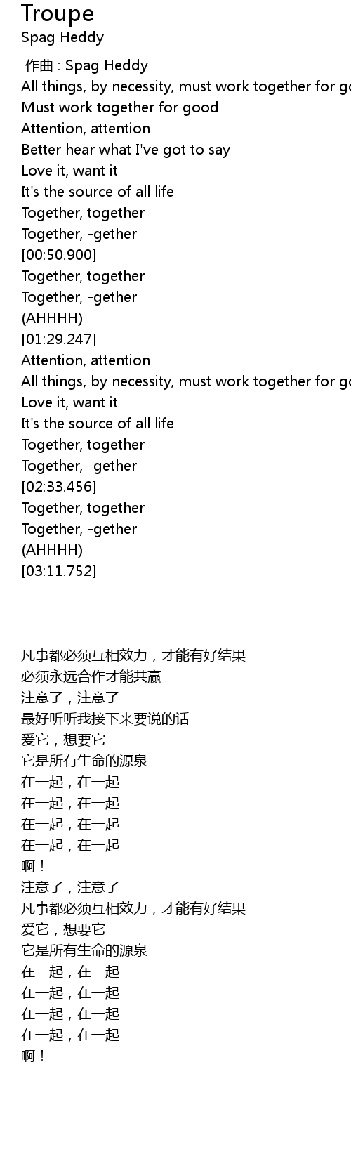 | [03:00.049] | Together, together |