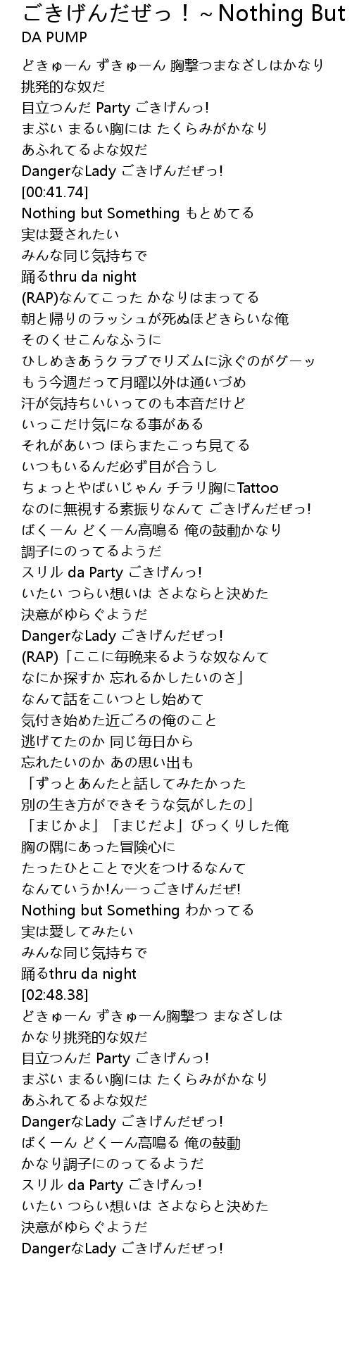 | [02:02.86] | DangerなLady ごきげんだぜっ! |