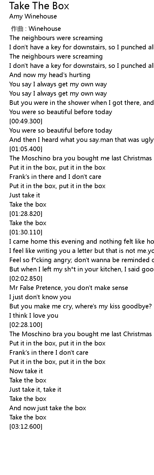 | [01:30.100] | Take the box |