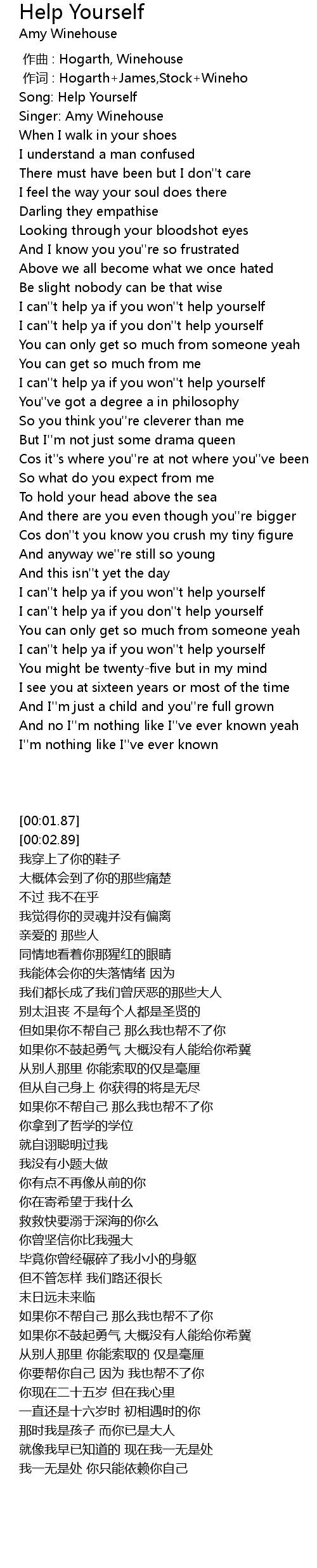 | [00:01.87] | Song: Help Yourself |