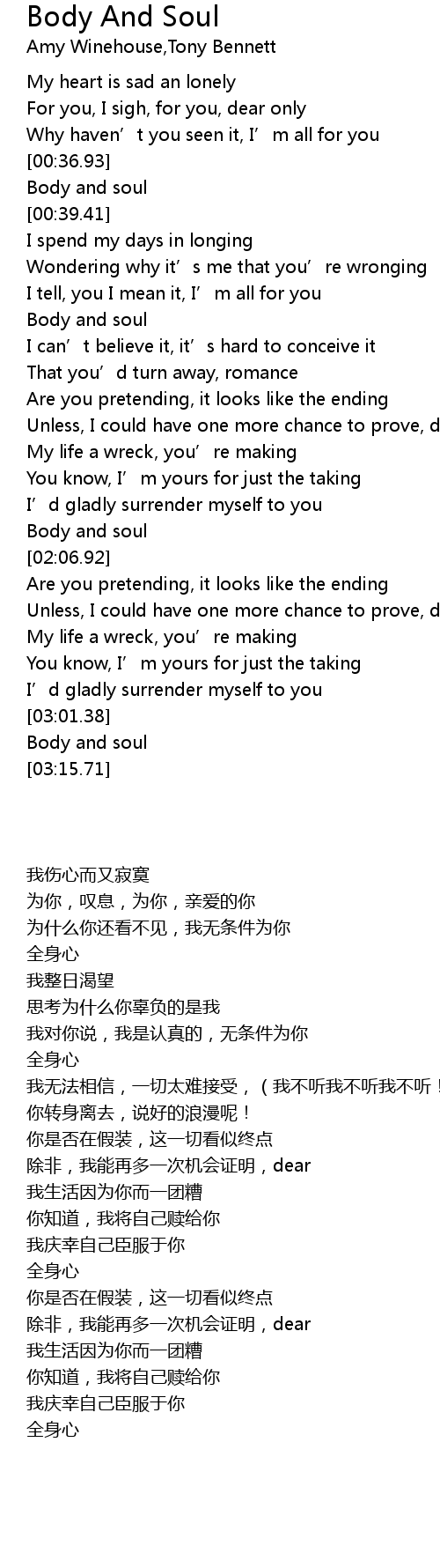 | [00:37.50] | Body and soul |