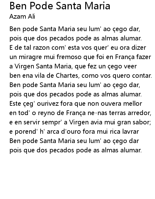 | Song | Ben Pode Santa Maria |