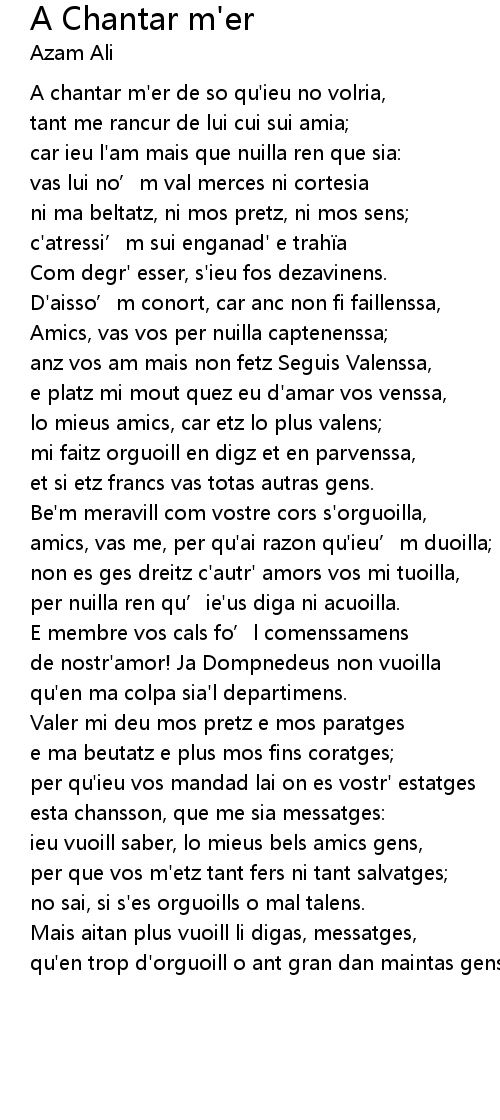 | A chantar m' er de so qu' ieu no volria, | |