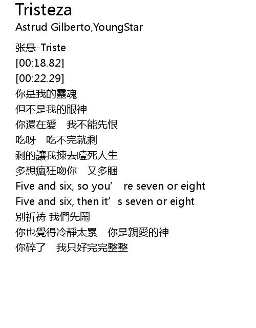 | [01:55.80] | Five and six, then it' s seven or eight |