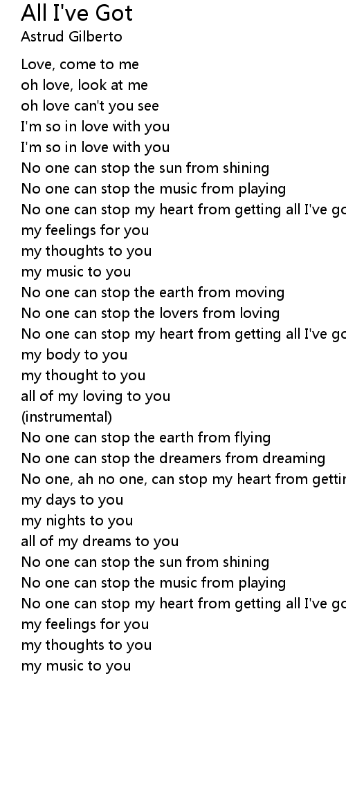 No one can stop my heart from getting all I've got to you |