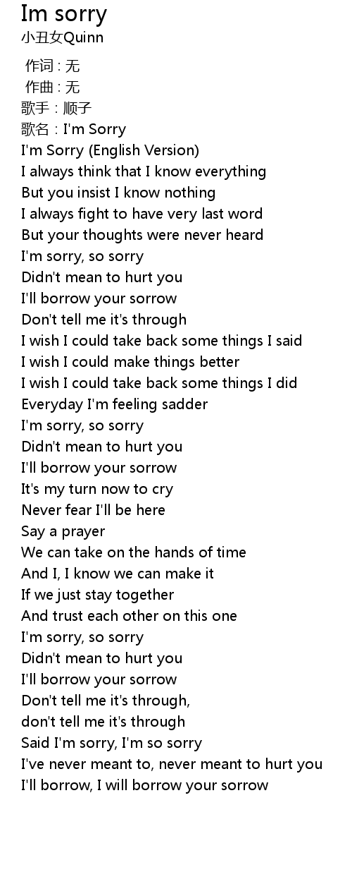 | [00:22.433] | gē míng: I' m Sorry |