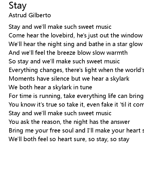 So stay and we'll make such sweet music |