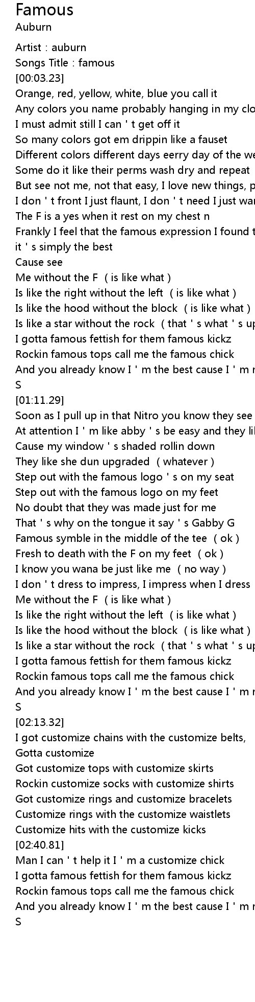 | [02:08.17] | And you already know I m the best cause I m rockin that F A M O U S |