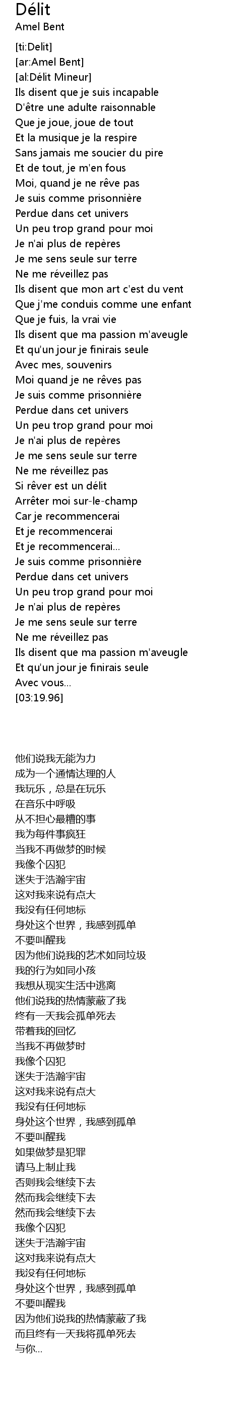 | [02:47.25] | Je suis comme prisonnie re |