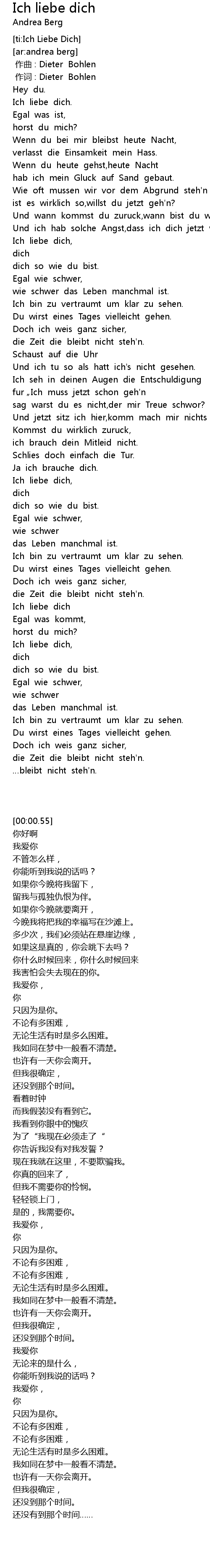 | [00:48.19] | Und ich hab solche Angst,dass ich dich jetzt verlier. |