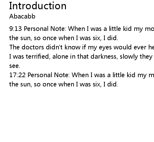 | 9:13 Personal Note: When I was a little kid my mother told me not to stare into the sun, so once when I was six, I did. | |
